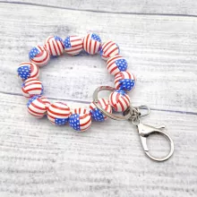 Use our battle tested marketing materials for USA Flag Print Wooden Beaded Baseball Keychain with Red White Blue Tassel