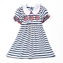 Use our battle tested marketing materials for Girls Patriotic Navy Stripe Flag Embroidery Cotton Dress