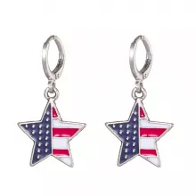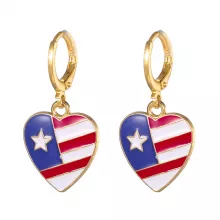 Patriotic Pentagram Heart Shape American Flag Earrings