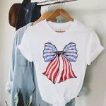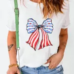 Celebrate in Style with the 4th Of July Women's Summer Bow Print Casual T-Shirt