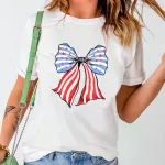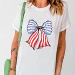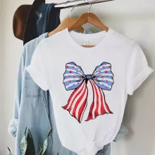 Get ready to shine this summer with our 4th Of July Women's Summer Bow Print Casual T-Shirt! This charming top is designed to bring a festive touch to your wardrobe while ensuring you stay cool and comfortable. Perfect for celebrating Independence Day, beach outings, or casual gatherings, this t-shirt combines fashion and fun effortlessly.Basic Features