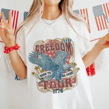 Use our battle tested marketing materials for Women’s Retro 4th of July Short Sleeve Cartoon Print T-Shirt
