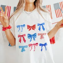 Use our battle tested marketing materials for Chic Summer O-Neck T-Shirt with Patriotic Bow Print