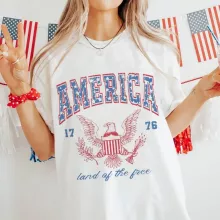 Use our battle tested marketing materials for Retro 4th of July Women's Graphic Tee - Independence Day Fashion