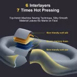 Our sleep mask stands out with its ergonomic design and advanced features. The mask's lightweight and breathable materials ensure it remains comfortable even during long uses. The contoured shape fits perfectly on any face, eliminating pressure on your eyes and preventing light from sneaking in. This design allows you to open your eyes without touching the mask, so no more squished lashes or discomfort on flights.