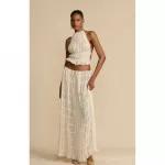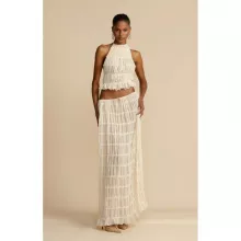 The Elegant White Maxi Skirt Set stands out for its unique combination of elegance and comfort. The backless cropped halter top adds a touch of allure, while the pleated, ankle-length skirt creates a graceful silhouette. The ruched detailing enhances the overall look, making it a must-have for any fashion-forward wardrobe. With its natural fiber composition and stylish design, this set is not only beautiful but also eco-friendly.