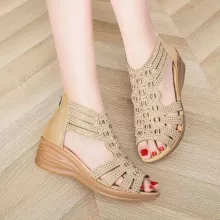 The Women's Crystal Wedge Sandals are crafted with comfort and fashion in mind. The wedge heel provides a comfortable lift, while the rhinestone embellishments add a luxurious touch. The open-toe design ensures breathability, making these sandals ideal for warm weather. The convenient zipper closure at the back allows for easy on and off, ensuring you can slip into these beauties effortlessly.