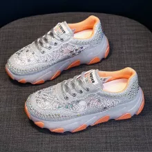 What sets these sneakers apart is their unique blend of glamour and practicality. The rhinestone and sequin embellishments make them a standout piece, while the breathable mesh material and cushioned EVA insole ensure you stay comfortable all day long. These sneakers are not just a fashion statement; they're designed with your comfort in mind.