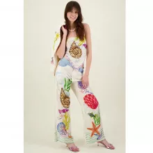 - Pants: High waist with an elastic closure for a flattering fit