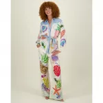 This Satin Print Pants and Shirt Set is not just another outfit; it’s a statement of style and comfort. The man-made fiber fabric offers a luxurious feel, while the bold print adds a pop of personality to your look. Designed with attention to detail, from the turn-down collar to the wide leg pants, this set is all about embracing modern fashion with a touch of sophistication.