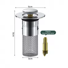Say goodbye to clogged sinks and hello to easy drainage with our Universal Bathroom Sink Plug Stopper. This pop-up sink drain strainer and plug is designed to fit any shower or bathroom sink with an 8cm depth. Made from high-quality stainless steel and ABS materials, this durable and reliable sink stopper will keep your sink free from hair, dirt, and other debris. Whether you're upgrading your bathroom or replacing an old stopper, our Universal Bathroom Sink Plug Stopper is the perfect solution.