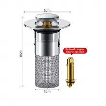 Our sink plug stopper is not just functional but also stylish, with a sleek electroplated finish that complements any bathroom décor. The pop-up mechanism allows for easy use, ensuring that water drains quickly and efficiently. The built-in strainer catches hair and other particles, preventing clogs and keeping your sink clean. This sink stopper is designed for hassle-free installation and maintenance, making it an essential addition to any bathroom.