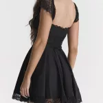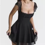 What sets this dress apart is its dedication to detail and quality. The non-stretch fabric emphasizes your natural curves, while the empire waistline enhances your silhouette. The delicate lace detailing adds a touch of romance, making it not just a dress, but a statement of style.