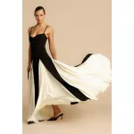 The standout feature of this maxi dress is its elegant contrast mesh detailing, which not only adds a touch of uniqueness but also provides a delicate, airy feel, perfect for the season's trend. Its flowing A-line cut and floor-length design emphasize a graceful stature, making every moment feel like a walk on the runway.