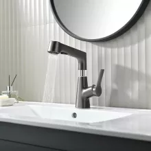 This contemporary faucet combines functionality with elegance, making it the perfect addition to any modern bathroom. Designed with a pull-out and rotating spout, it offers unmatched convenience for all your daily needs. Crafted from high-quality stainless steel, this faucet ensures durability and long-lasting performance.
