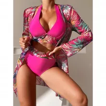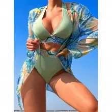 Get ready to turn heads this summer with our Halter Print Bikini with Kimono 2024. This stunning swimsuit set is designed for women who want to combine style, comfort, and confidence. The floral print bikini features a flattering high waist and a chic halter top, offering a perfect blend of modern fashion and timeless elegance. Whether you're lounging by the pool or catching waves at the beach, this bikini set is your go-to choice for all your swimwear needs.Product Features