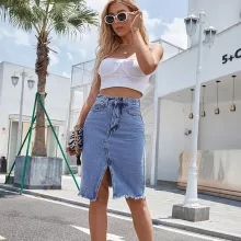 Use our battle tested marketing materials for High Waist Split Denim Midi Skirt for Women