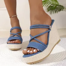 Use our battle tested marketing materials for Denim Wedge Heel Sandals