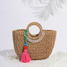 Use our battle tested marketing materials for Handwoven Rattan Beach Handbag with Acrylic Chain