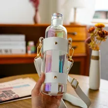 Use our battle tested marketing materials for 500ml Glass Water Bottle with PU Cup Holder & Time Marker