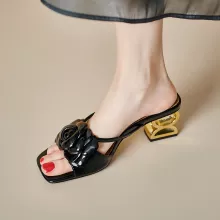 Use our battle tested marketing materials for Elegant Summer Leather Sandals with Flower Shaped Heel