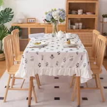 Use our battle tested marketing materials for Embroidered Floral Cotton Tablecloth with Ruffled Edges