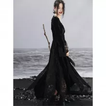 Use our battle tested marketing materials for Dark Velvet Lace Splice Dress for Women - Elegant Autumn Style