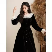 Use our battle tested marketing materials for Elegant Women's Velvet Button Down Dress for Autumn/Winter