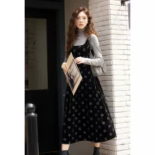 Use our battle tested marketing materials for Elegant Velvet Flower Print Camisole Dress for Office Ladies