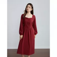 Use our battle tested marketing materials for Retro Red Long Sleeve Square Neck Dress with Lace Decoration