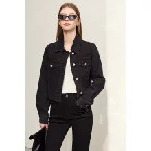 Use our battle tested marketing materials for Chic Autumn Short Black Denim Jacket with Turn-down Collar