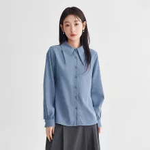 Use our battle tested marketing materials for Elegant Long Sleeve Polo Neck Blouse with Petal Cuffs