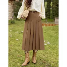 Use our battle tested marketing materials for High Waist Pleated A-Line Skirt with Decorative Belt and Pockets