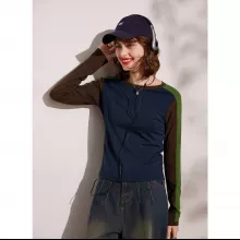 Use our battle tested marketing materials for Spring Long Sleeve Casual Round Neck Contrast Color Pullover Top