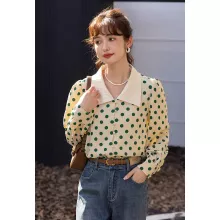 Use our battle tested marketing materials for Vintage Polka Dot Polo-Neck Blouse for Office Ladies