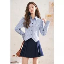 Use our battle tested marketing materials for Irregular Striped Flared Sleeve Polo Neck Shirt