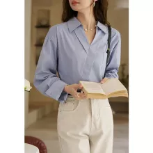 Use our battle tested marketing materials for French Retro Turn-down Collar V Neck Long Sleeve Shirt for Women