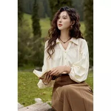 Use our battle tested marketing materials for Bubble Sleeve V Neck Chiffon Embroidery Shirt for Women