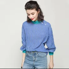 Use our battle tested marketing materials for Striped Lantern Sleeve Ribbed Blouse