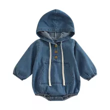 Use our battle tested marketing materials for Cozy Fall Hooded Baby Jumpsuit - Button Front Denim Romper