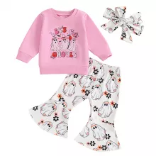 Use our battle tested marketing materials for Toddler Girls Halloween Long Sleeve Ghost Print Top and Floral Pants Set