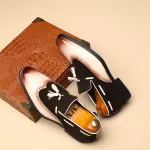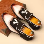 These mixed-color loafers are the perfect blend of style, comfort, and versatility. The brogue detailing and tassel accents bring a traditional elegance, while the bold mix of colors ensures you stand out in any setting. Whether you're dressing up for a wedding, a business meeting, or any formal occasion, these loafers will make sure you leave a lasting impression. The pointed toe and sleek silhouette offer a refined and modern look, making these shoes a standout addition to any wardrobe.Perfect for Weddings, Business, and Formal Events