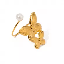 Use our battle tested marketing materials for 18K PVD Plated Stainless Steel Double Butterfly Pearl Asymmetrical Ring