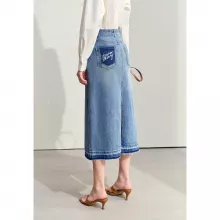 Use our battle tested marketing materials for Casual Denim A-Line Skirt with Embroidery and Open Fork Detail