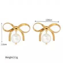 Use our battle tested marketing materials for Gold Plated Stainless Steel Bowknot White Pearl Earrings