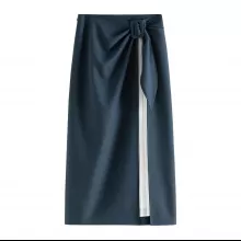 Use our battle tested marketing materials for Elegant Dark Gray Blue Accordion Skirt for Women - High Waist A-Line Patchwork Office Skirt