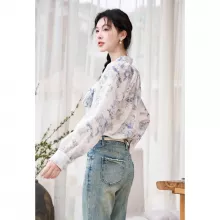 Use our battle tested marketing materials for Floral Chiffon Lace-up Blouse with Puff Sleeves