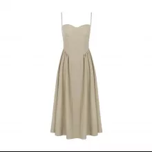 Use our battle tested marketing materials for Elegant Khaki Midi Spaghetti Strap A-Line Party Dress