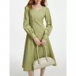 Embrace the essence of autumn and enhance your wardrobe with the Autumn Elegance Mid-Calf Dress. Designed to offer a perfect blend of style and comfort, this dress features a flattering sweetheart neckline and long puff sleeves, making it a quintessential piece for the modern office lady. Crafted from a luxurious mix of cotton and polyamide, the dress presents a soft, breathable fabric that ensures comfort throughout your day. Its empire waistline and draped detailing accentuate your figure, while the fit and flare silhouette offers a timeless appeal that transitions effortlessly from office to evening.