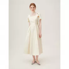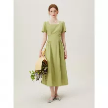 Use our battle tested marketing materials for Elegant Square Neck Mid-Calf Pleated Dress